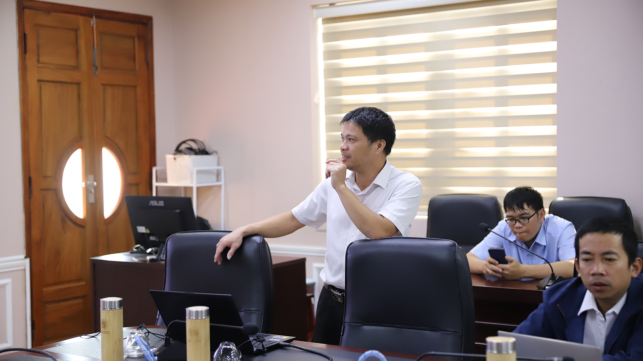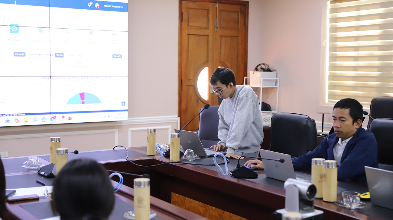 Nhân viên Nguyễn Trọng Kiệt trình bày nội dung thống kê trên phần mềm E-Office.
